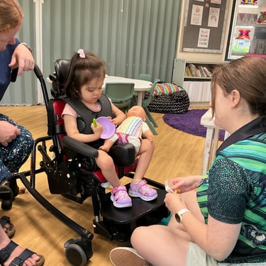 After physio, we move to speech therapy. These sessions are quieter but deeply meaningful. The therapist uses sign systems, songs, and playful interactions to help Antonella communicate. They use yes/no buttons, encouraging her to press the one she wants, to make choices, and to express herself in any way she can. Sometimes Antonella responds with her eyes, sometimes with a sound, sometimes with a tiny movement, and every small response is celebrated.
