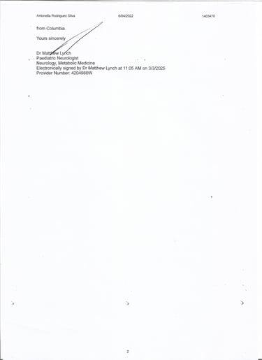 Antonella is significantly behind other kids of her age both physically and cognitively. She requires support 24 hours a day. This support is provided mostly by her mum, Paula and, her Dad, Diego, finding it extremely difficult to find care options due to Antonella’s high support needs. She is physically carried or held over the day as she cannot support herself in sitting positions.